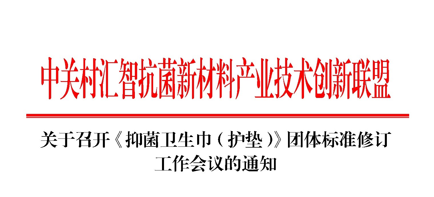 關(guān)于召開《抑菌衛(wèi)生巾(護(hù)墊)》團(tuán)體標(biāo)準(zhǔn)修訂工作會(huì)議的通知