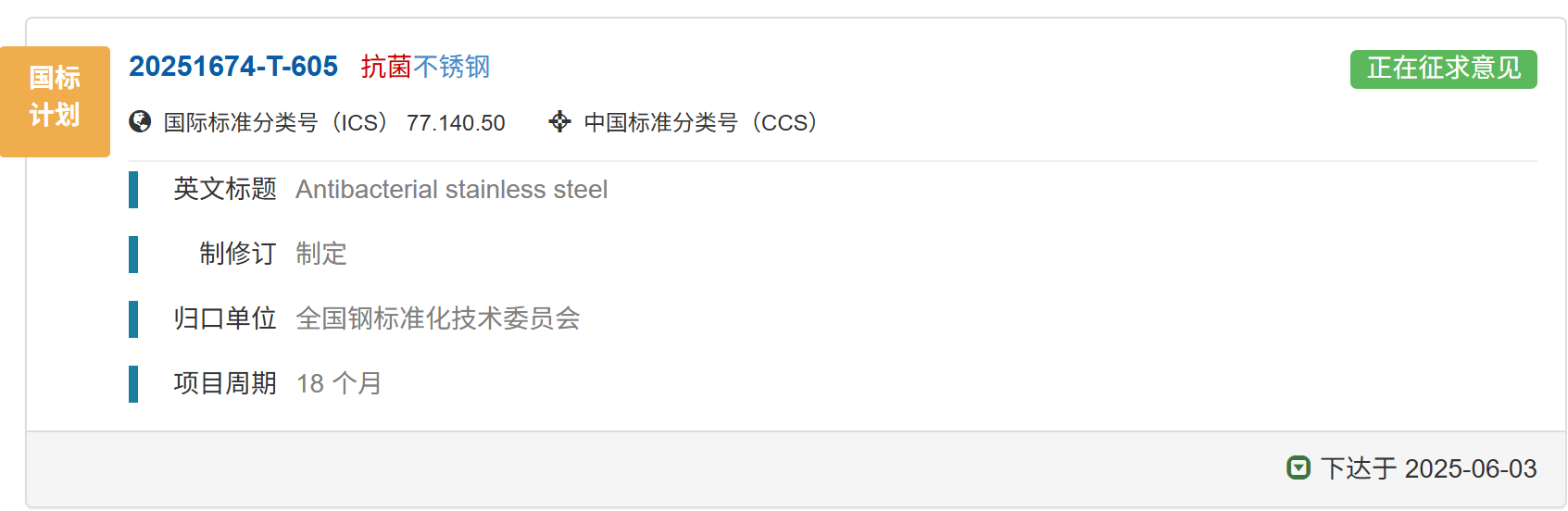 國(guó)家標(biāo)準(zhǔn)《抗菌不銹鋼》正在征求意見(jiàn),歡迎報(bào)名成為起草單位參與制定行業(yè)技術(shù)新規(guī)則